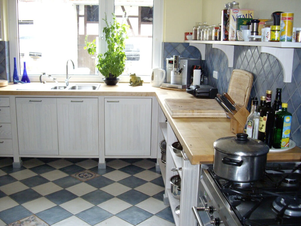 - Separater Küchenblock dient als Anrichte und Zubereitungsfläche – flexibel und stilvoll.